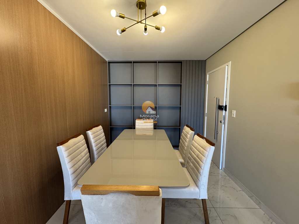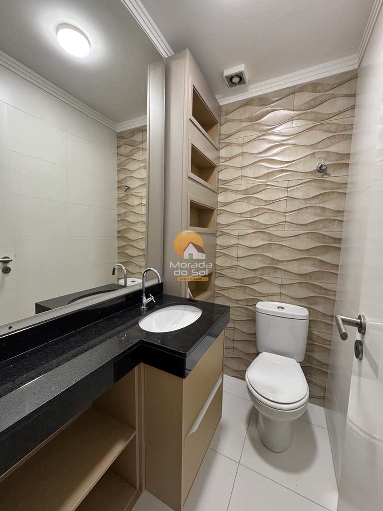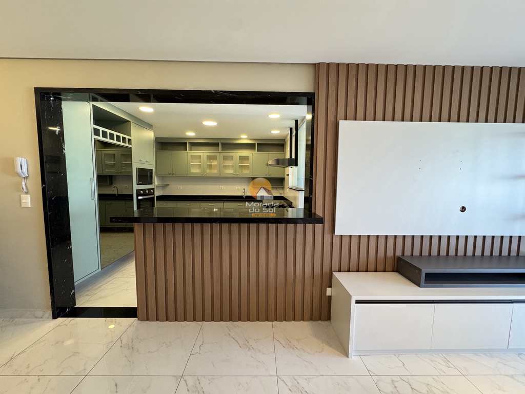 São 03 dormitórios, sendo 03 suítes, sala para dois ambientes, cozinha, varanda gourmet com churrasqueira, área de serviço espaçosa, instalação para ar-condicionado em todos os cômodos, banheiro social, vista livre, 03 vagas de garagem.